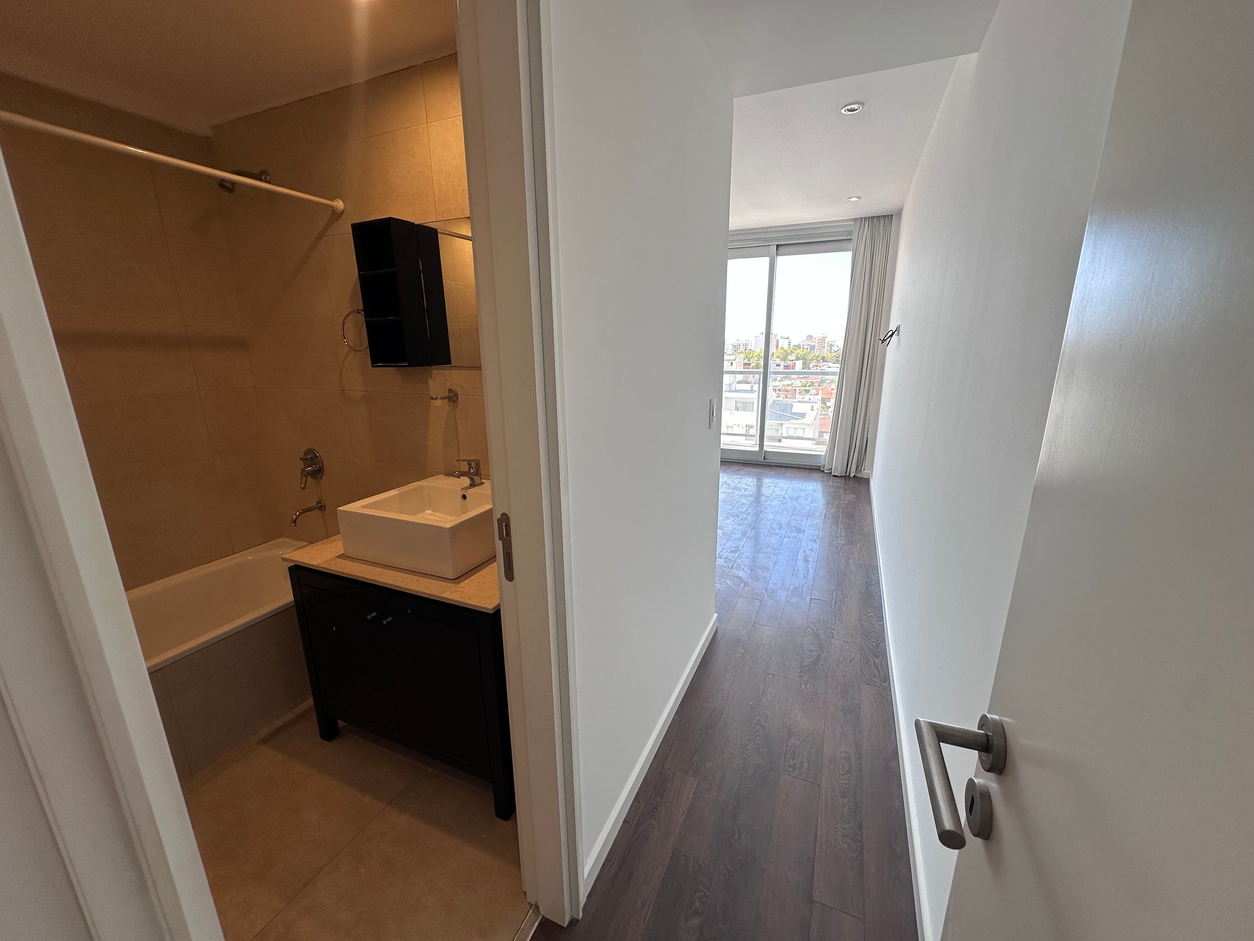 En venta departamento de 2 ambientes al contrafrente vista abierta y al mar. La Perla. Superficie cubierta de 56m² mas 7m² de balcón corrido. Living comedor con ventanal salida a balcón, cocina semiintegrada con barra desayunadora y espacio de lavadero con ventilación natural. Toilette de visitas. Dormitorio en suite con bañera y placard, también con ventanal salida a balcón corrido. Calefacción por losa radiante. Aberturas exteriores de aluminio con DVH. Pisos y revestimientos en porcelanato.
