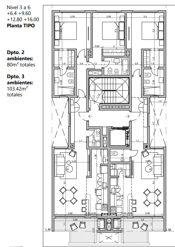 • Cantidad de niveles: Planta baja y 5 pisos.