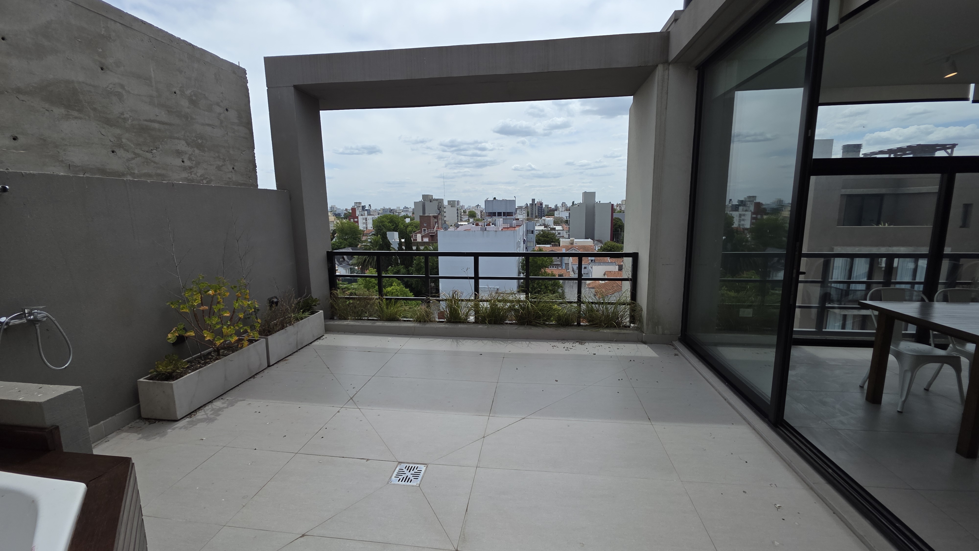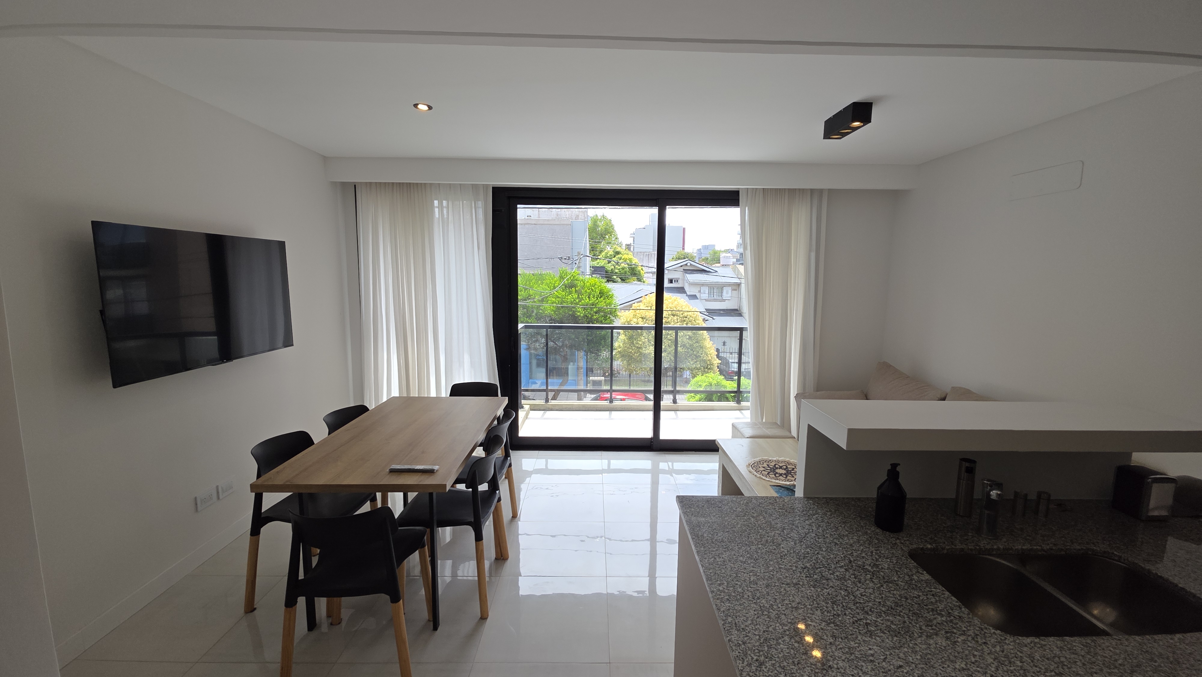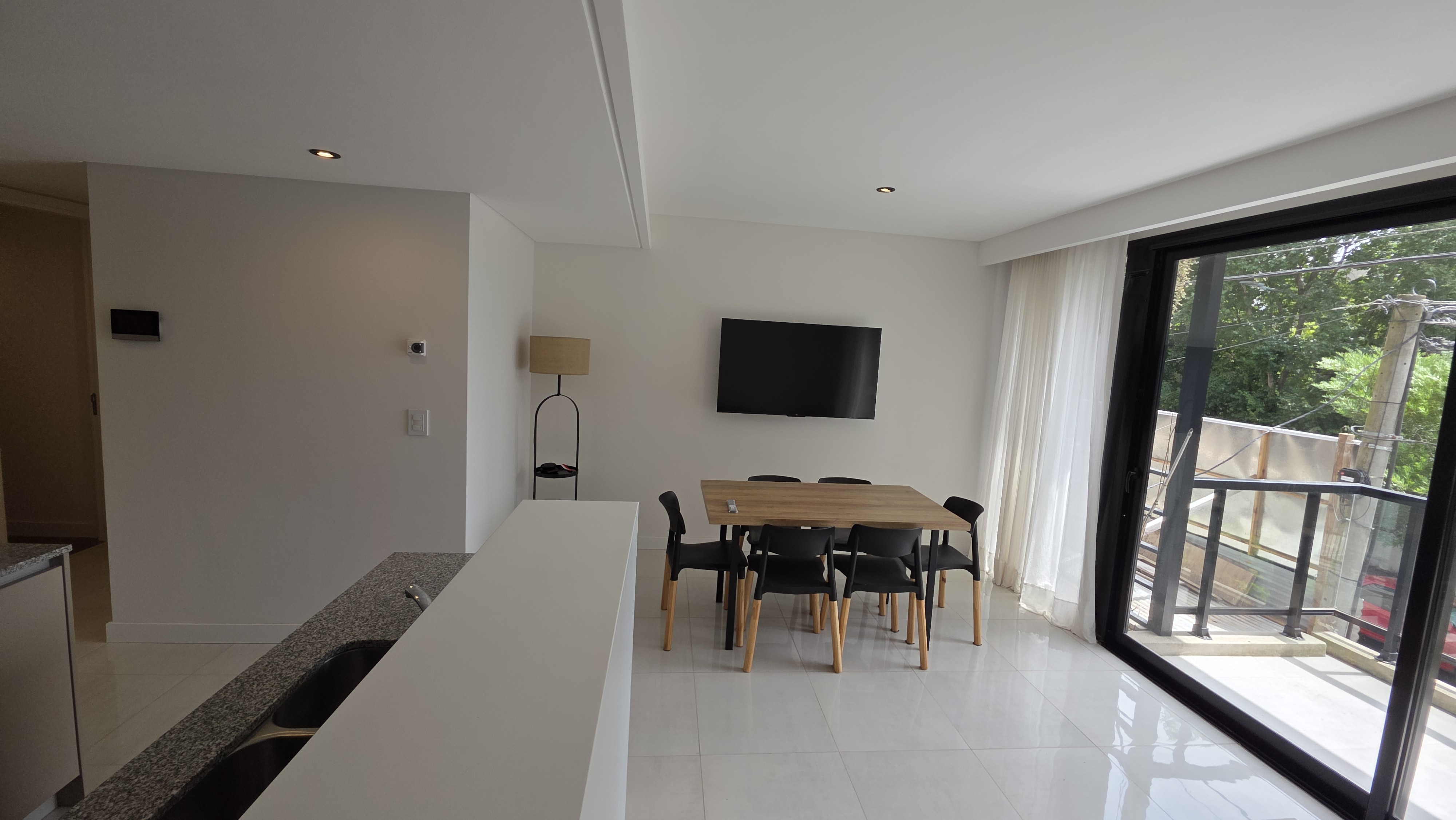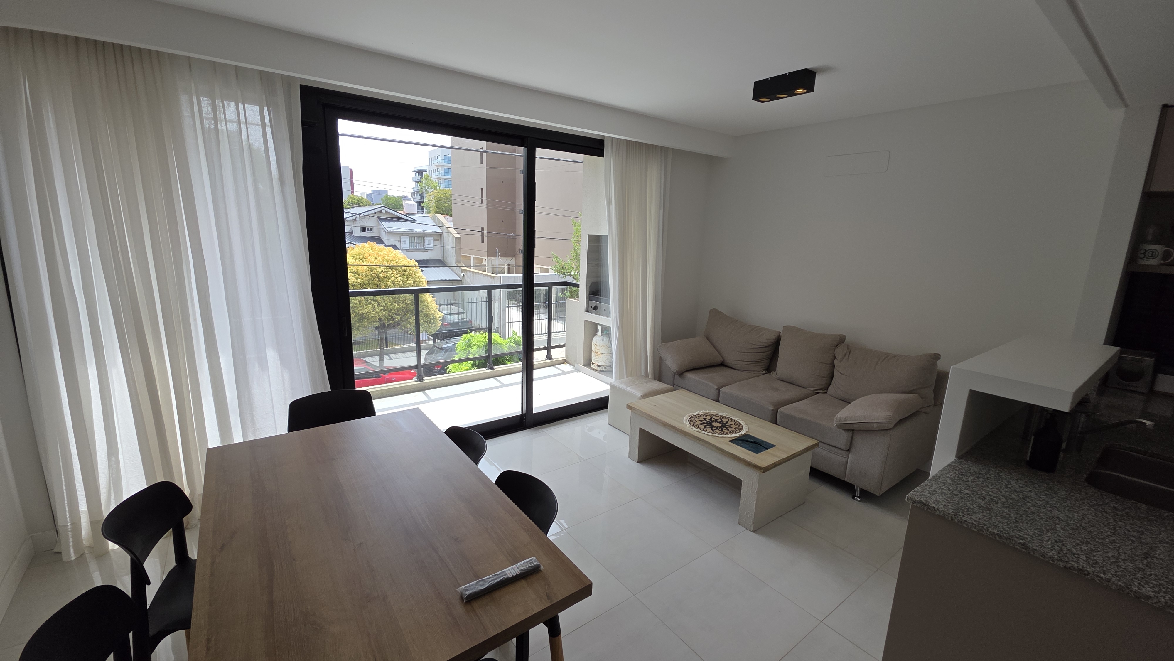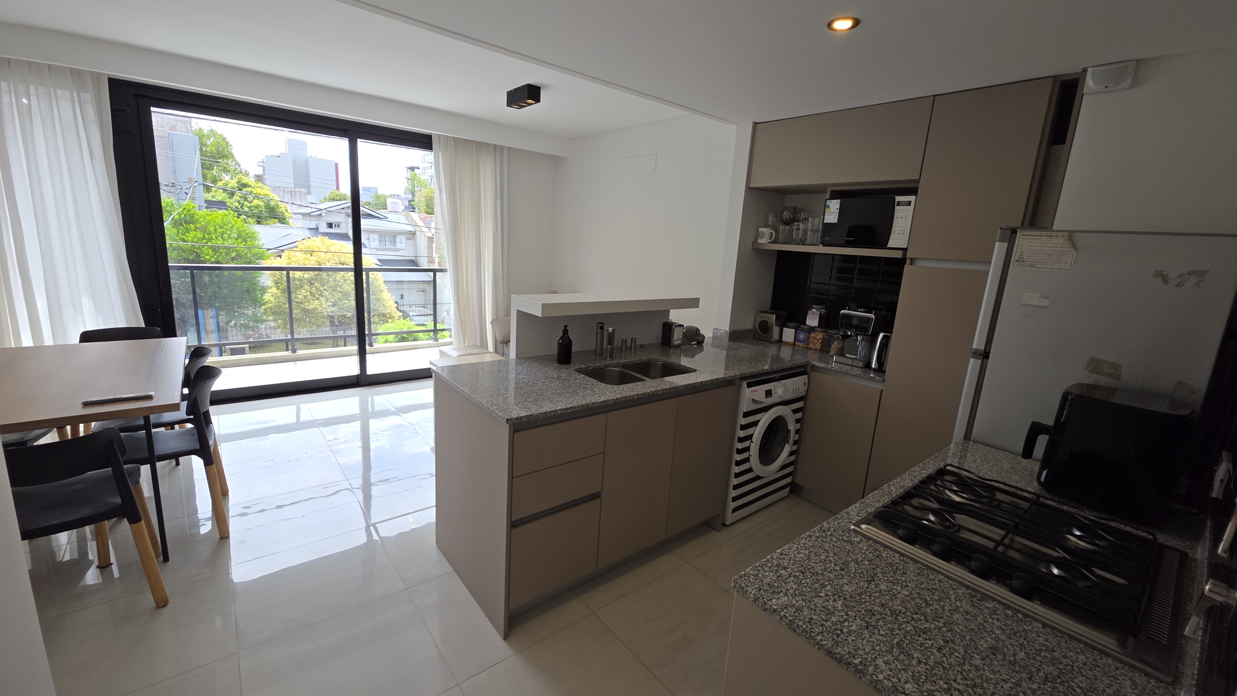 Superficie cubierta de 54 m² mas 10 m² de balcón. Living comedor amplio, cocina integrada con barra desayunadora, ventanal de piso a techo con salida a balcón terraza con parrilla a gas. Toilette de recepción. Dormitorio en suite al contrafrente con salida a balcón terraza, vestidor. Carpintería de exteriores de aluminio con DVH, Calefacción por losa radiante. El departamento cuenta con cochera descubierta y baulera.