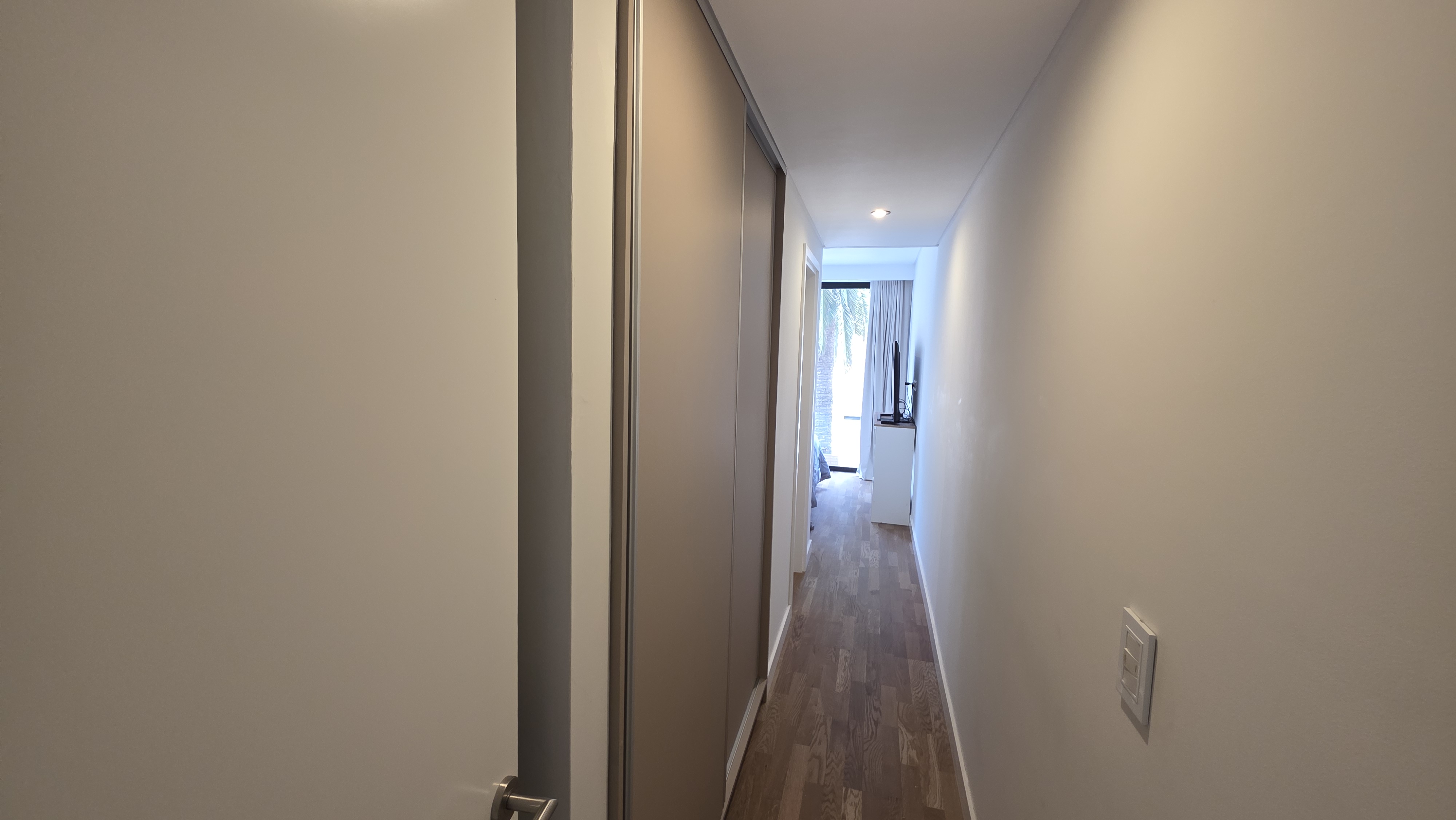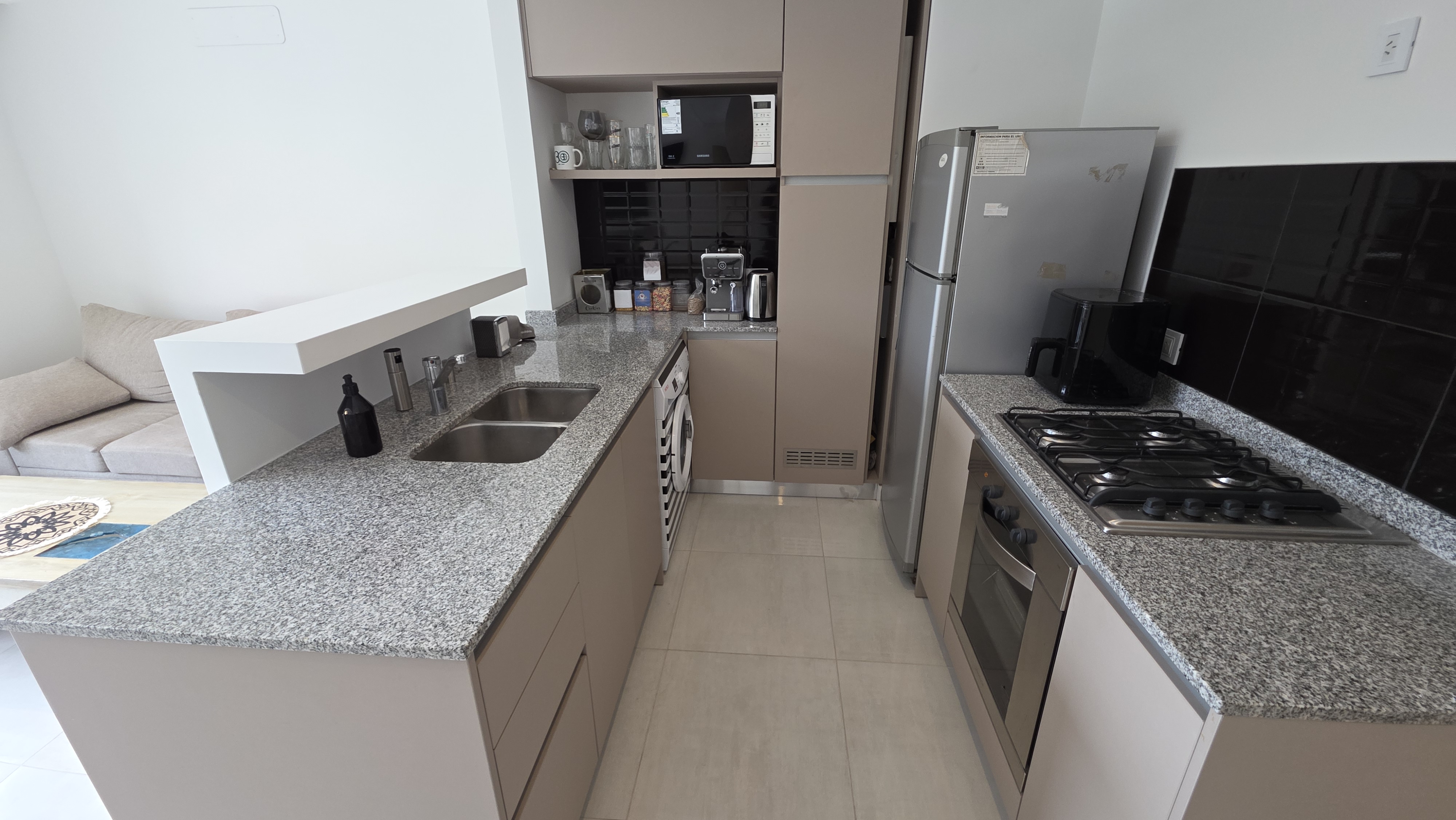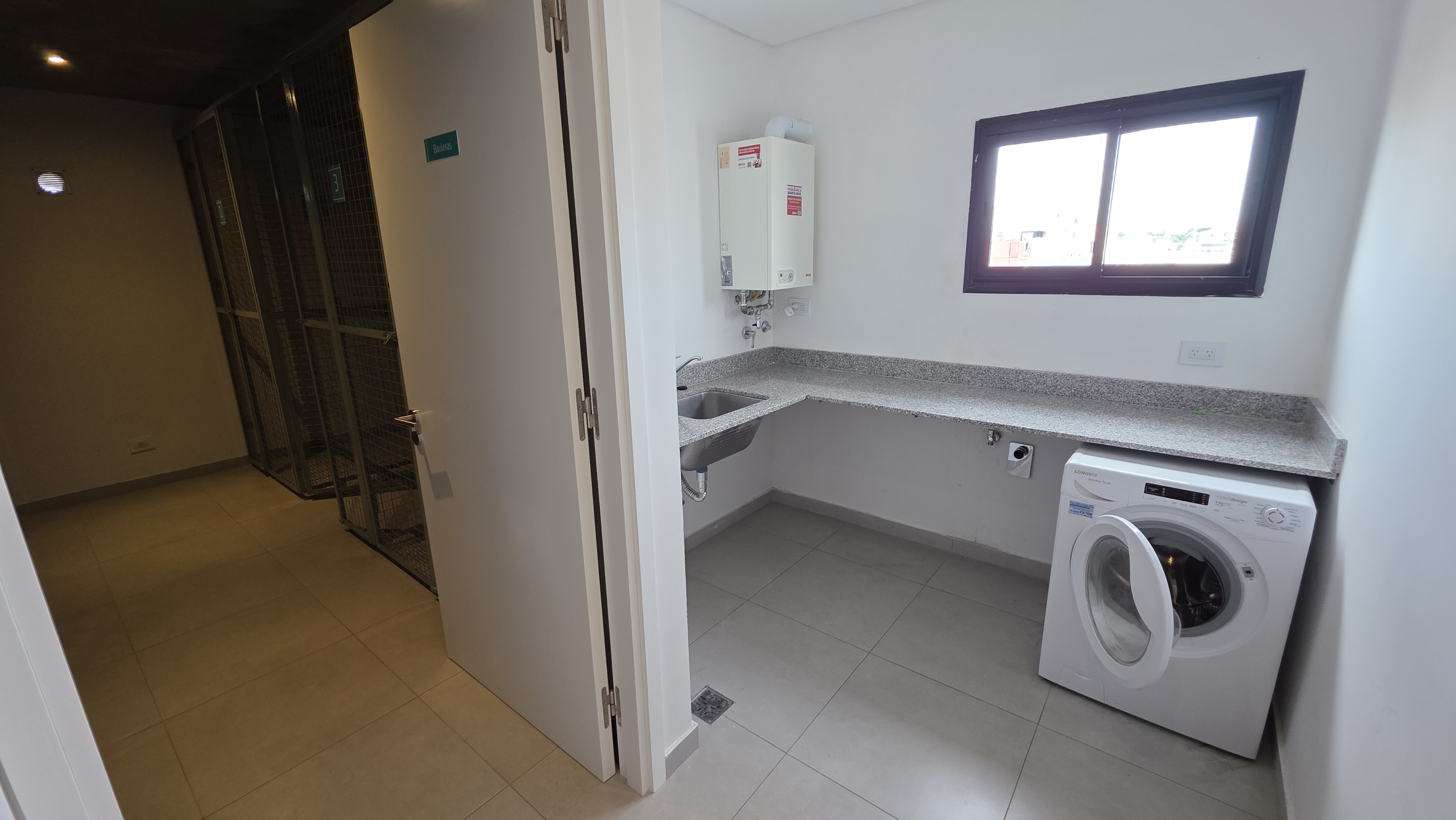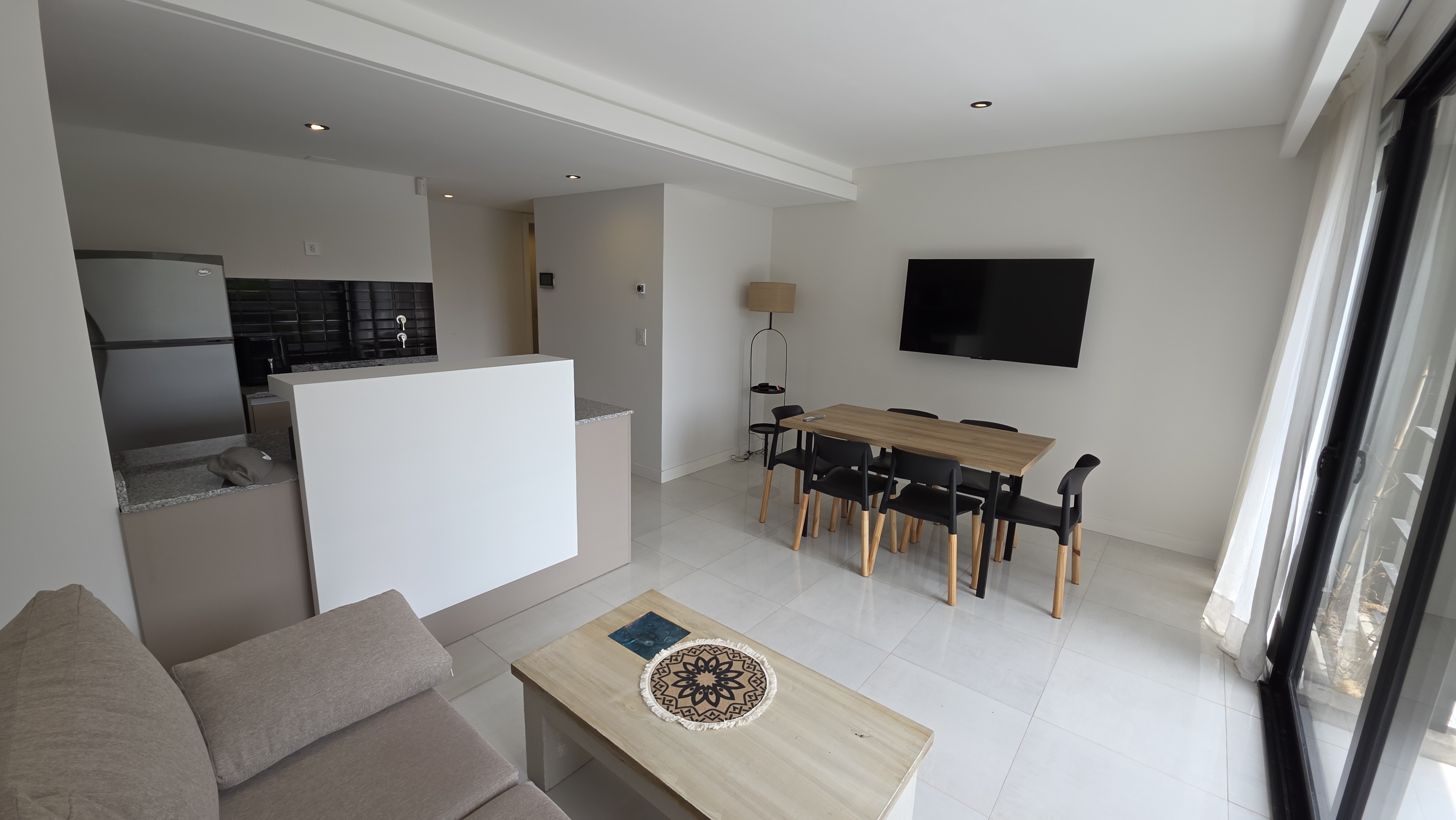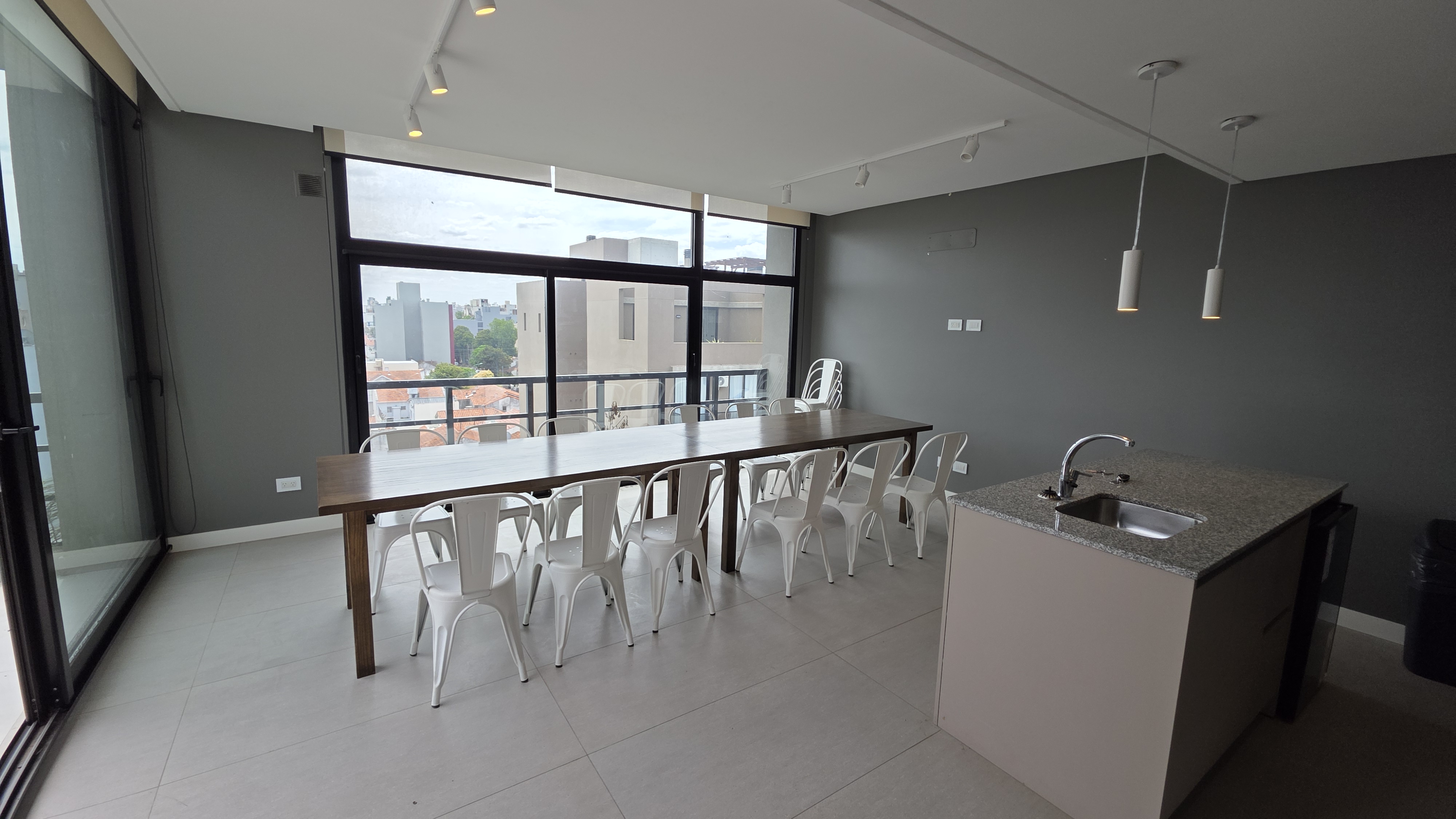 Superficie cubierta de 54 m² mas 10 m² de balcón. Living comedor amplio, cocina integrada con barra desayunadora, ventanal de piso a techo con salida a balcón terraza con parrilla a gas. Toilette de recepción. Dormitorio en suite al contrafrente con salida a balcón terraza, vestidor. Carpintería de exteriores de aluminio con DVH, Calefacción por losa radiante. El departamento cuenta con cochera descubierta y baulera.