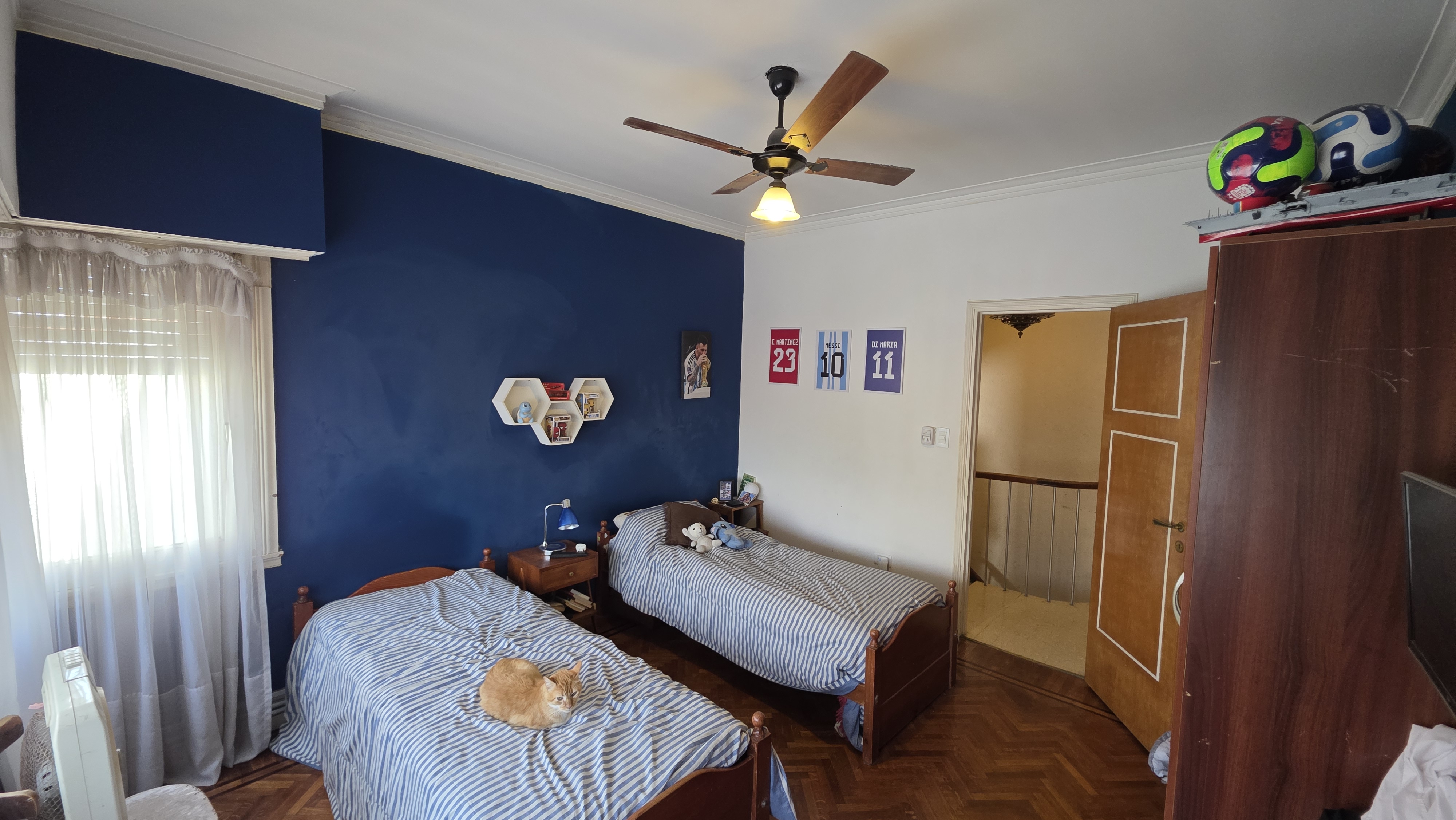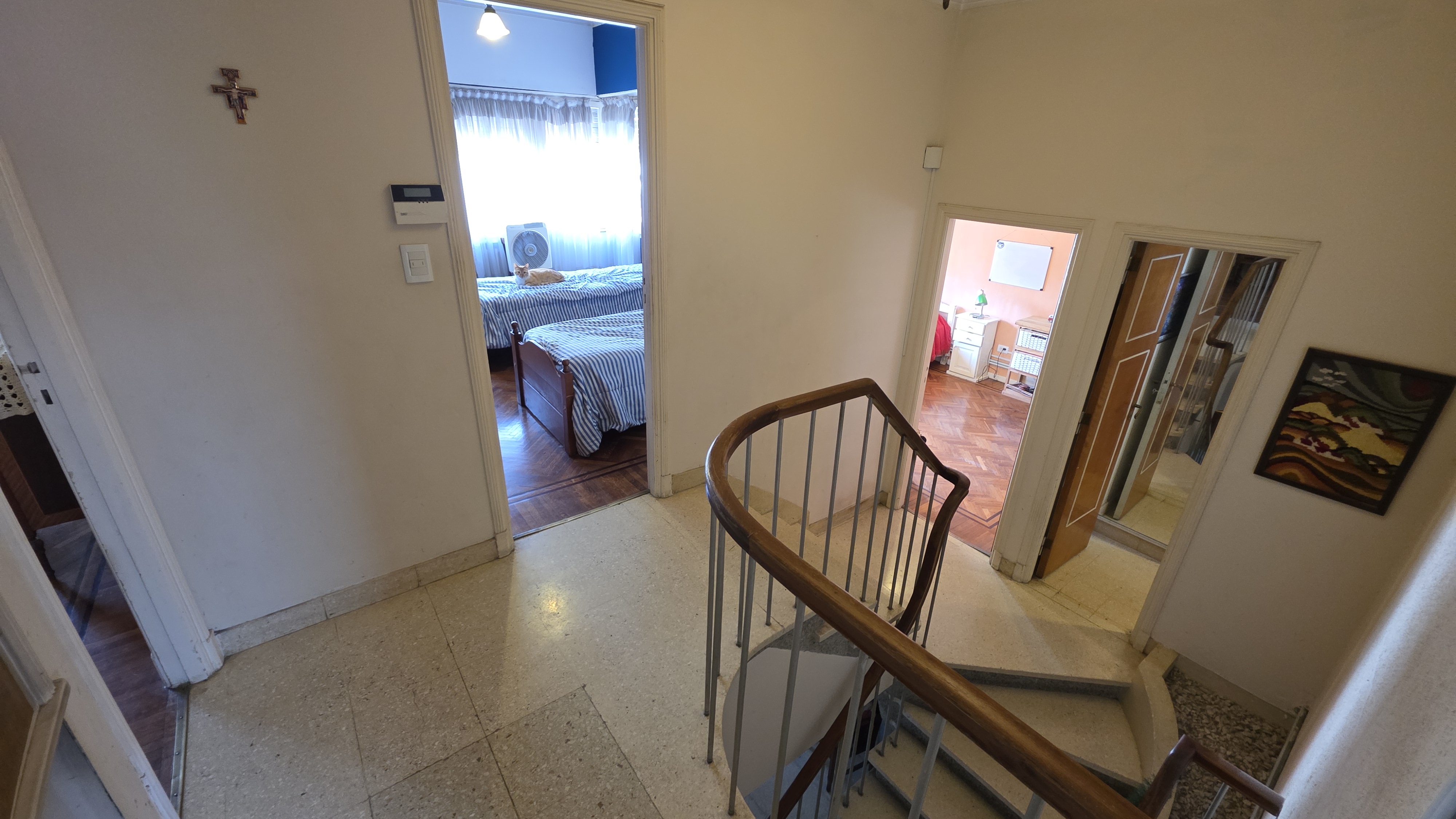 En planta alta cuenta con cuatro dormitorios, el principal en Suite con vestidor y balcon a la Calle. Todos los pisos de las habitaciones son de roble de Eslovenia. Los otros dos dormitorios comparten un baño completo y la habitación de servicio tiene su propio baño completo.