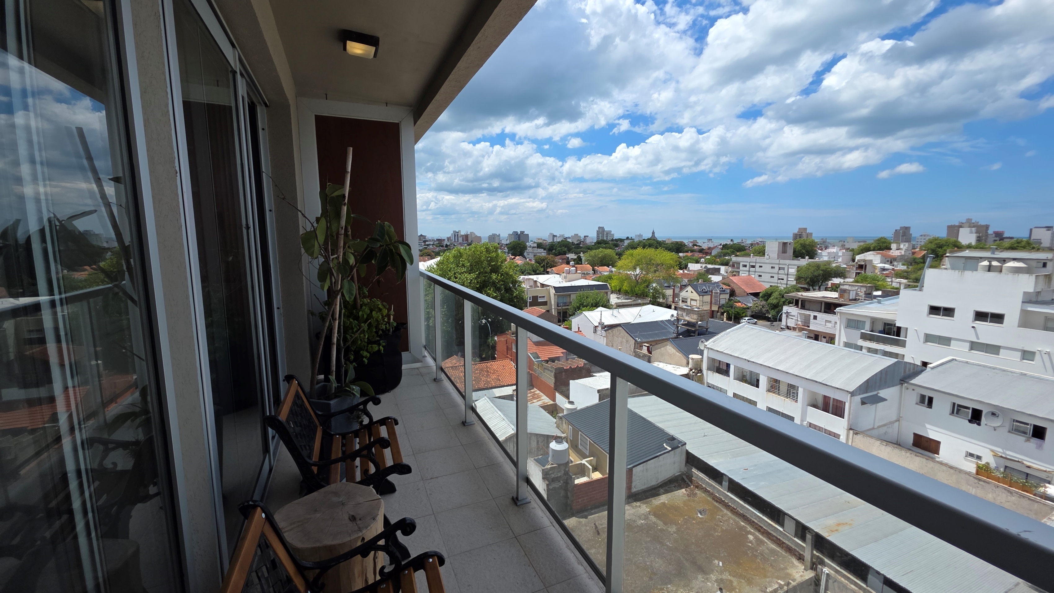 En venta departamento de 2 ambientes al contrafrente vista abierta y al mar. La Perla. Superficie cubierta de  56m² mas 7m² de balcón corrido. Living comedor con ventanal salida a balcón, cocina semiintegrada con barra desayunadora y espacio de lavadero con ventilación natural. Toilette de visitas. Dormitorio en suite con bañera y placard, también con ventanal salida a balcón corrido. Calefacción por losa radiante. Aberturas exteriores de aluminio con DVH. Pisos y revestimientos en porcelanato.