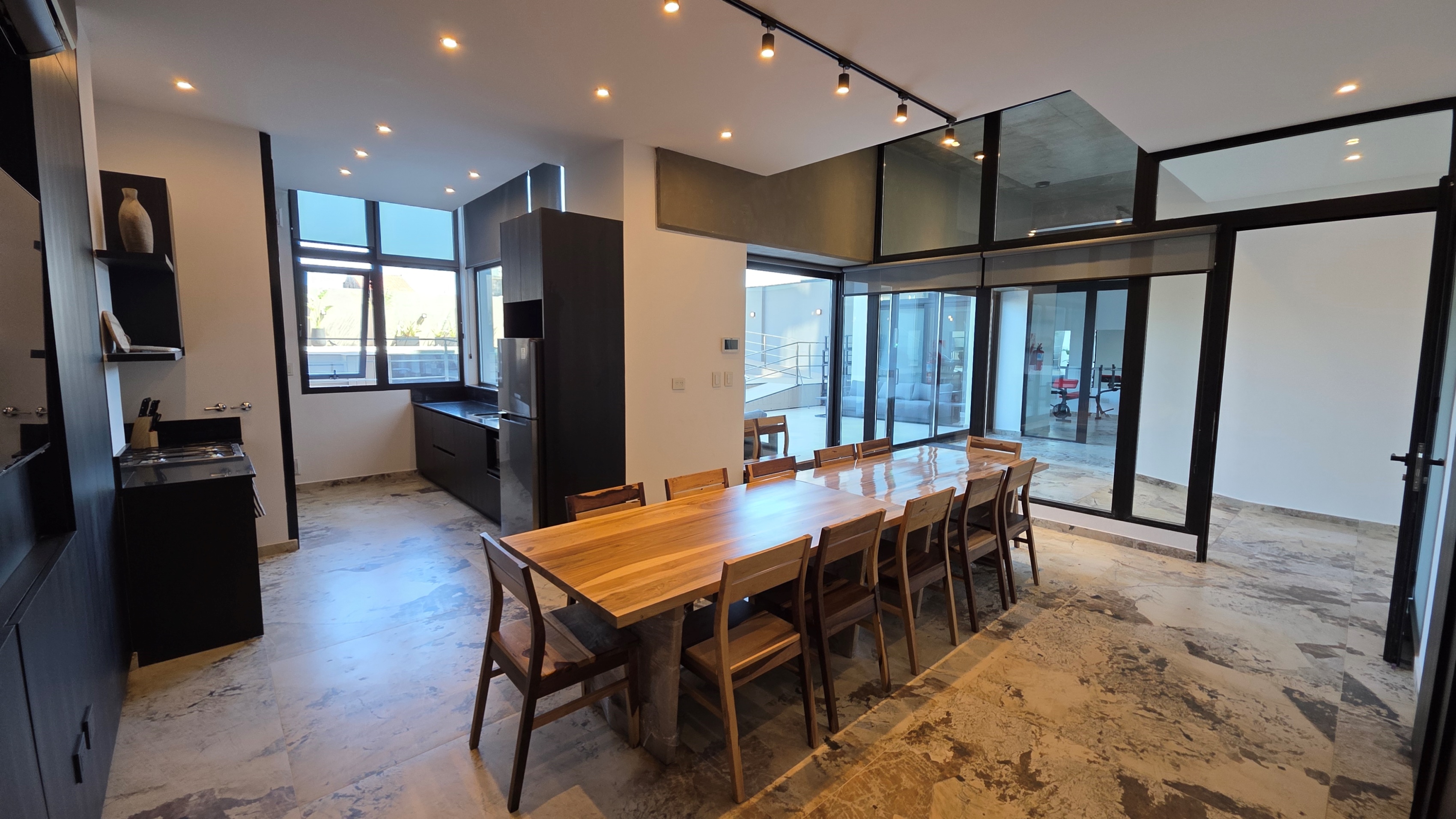 El edificio ofrece quincho de uso común equipado, gimnasio, pileta, solárium y vestuarios.