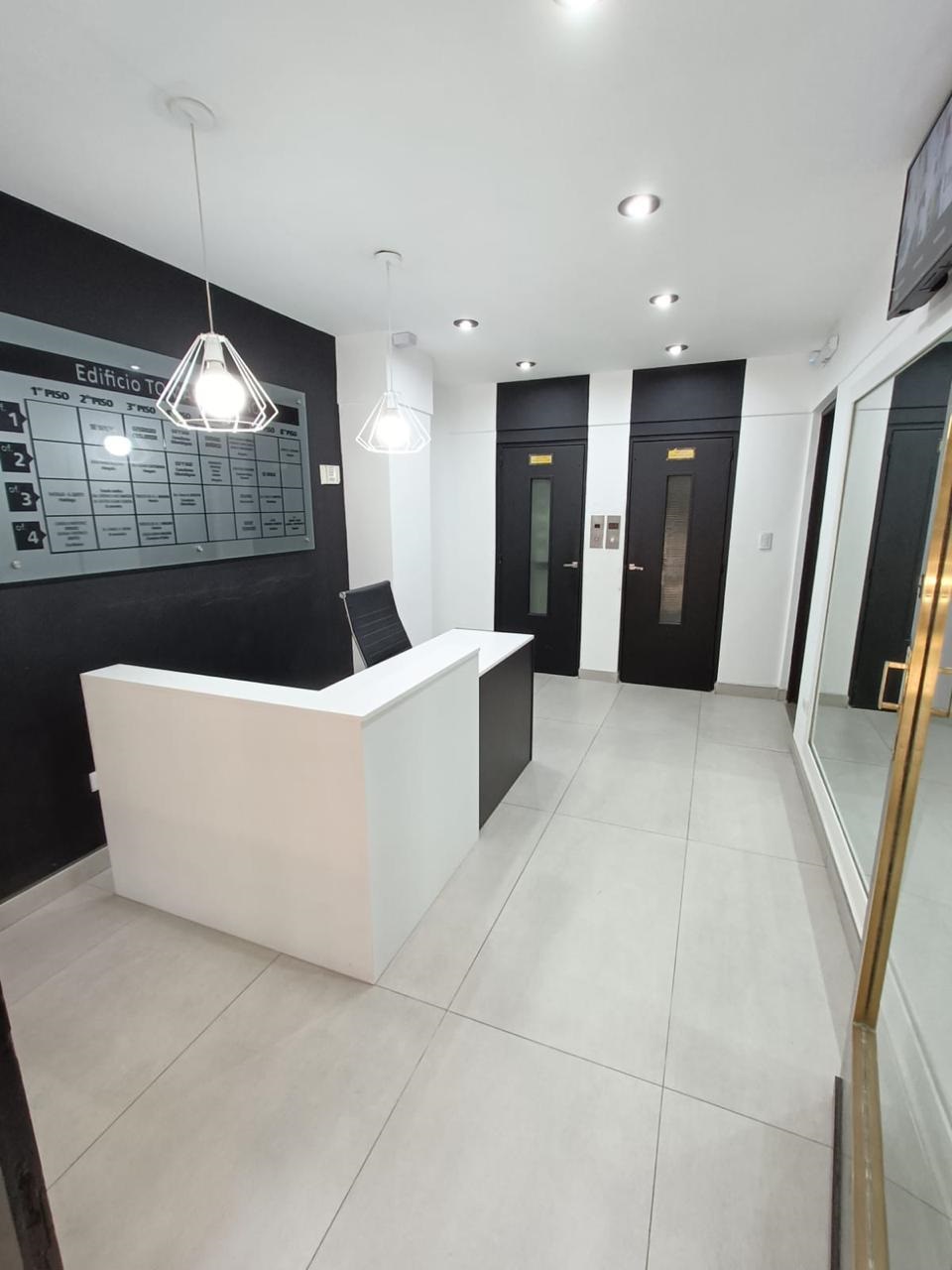 . Recepción en entrada al edificio, cámaras de seguridad