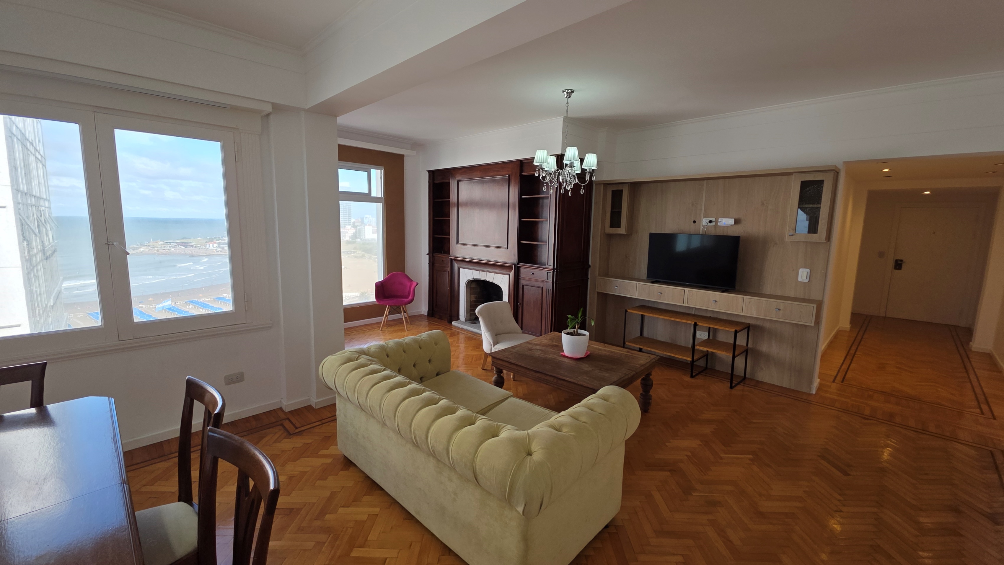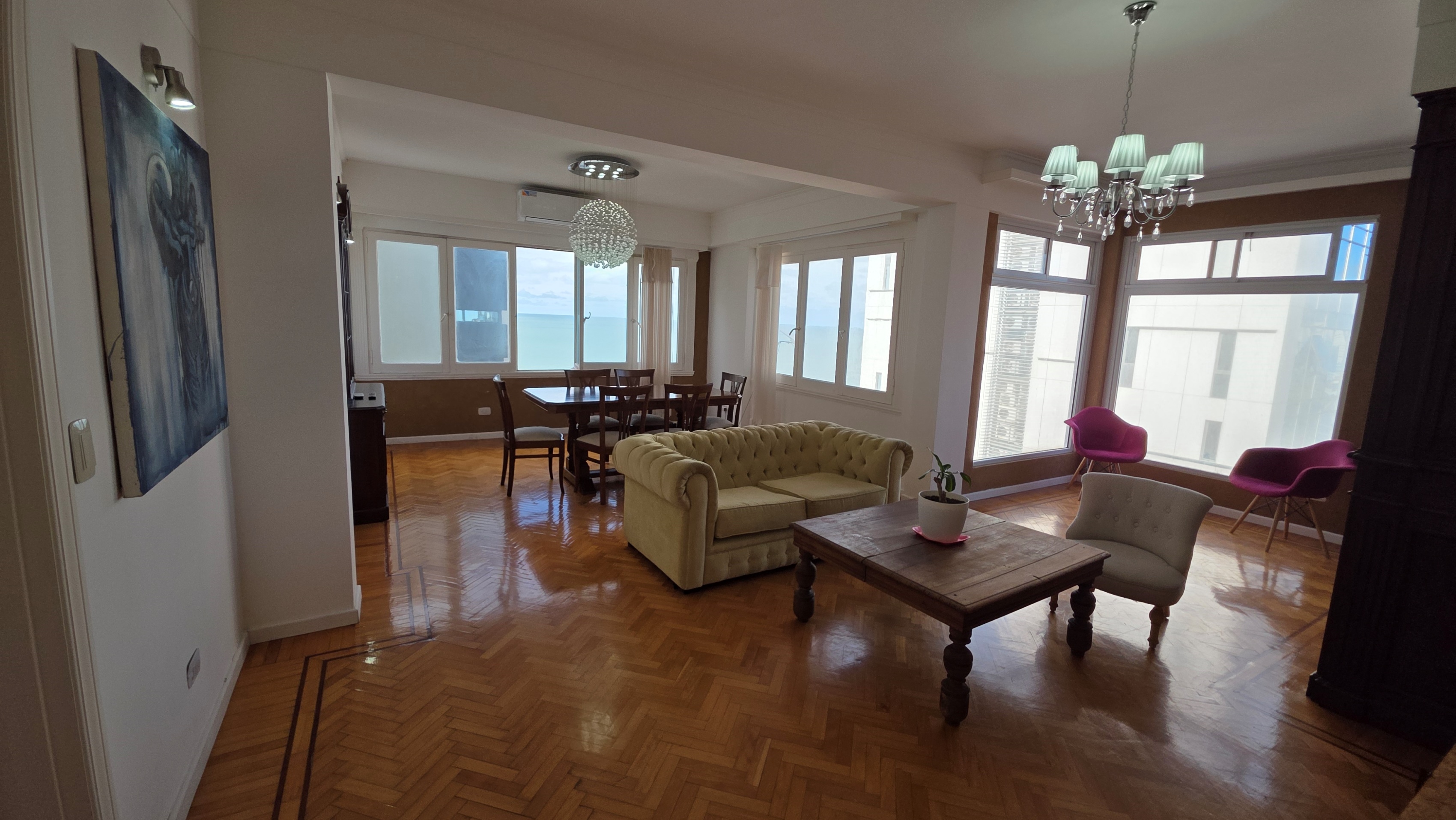 En venta departamento de 4 ambientes vista al mar. Varese. Superficie cubierta de 175m². Incluye cochera privada y baulera. Living comedor con hogar y cuatro ventanales vista al mar. Cocina con doble circulación de generosas medidas, totalmente reciclada con ventana e isla, cuenta con lavadero incorporado. Tres dormitorios, el principal es enorme con dos ventanales vista a playa Varese, está separado y es en suite con baño compartimentado e hidro más tres placares. Distribuidor a los dos cuartos secundarios ambos con placard y vista al mar. Estos dormitorios comparten un baño completo con ducha finlandesa. Pisos de parquet roble de Eslavonia. calefacción por aire frío calor, cochera cubierta fija con ingreso exclusivo, gran baulera. Excelente edificio de época con construcción muy sólida, vista al mar de casi todos sus ambientes.